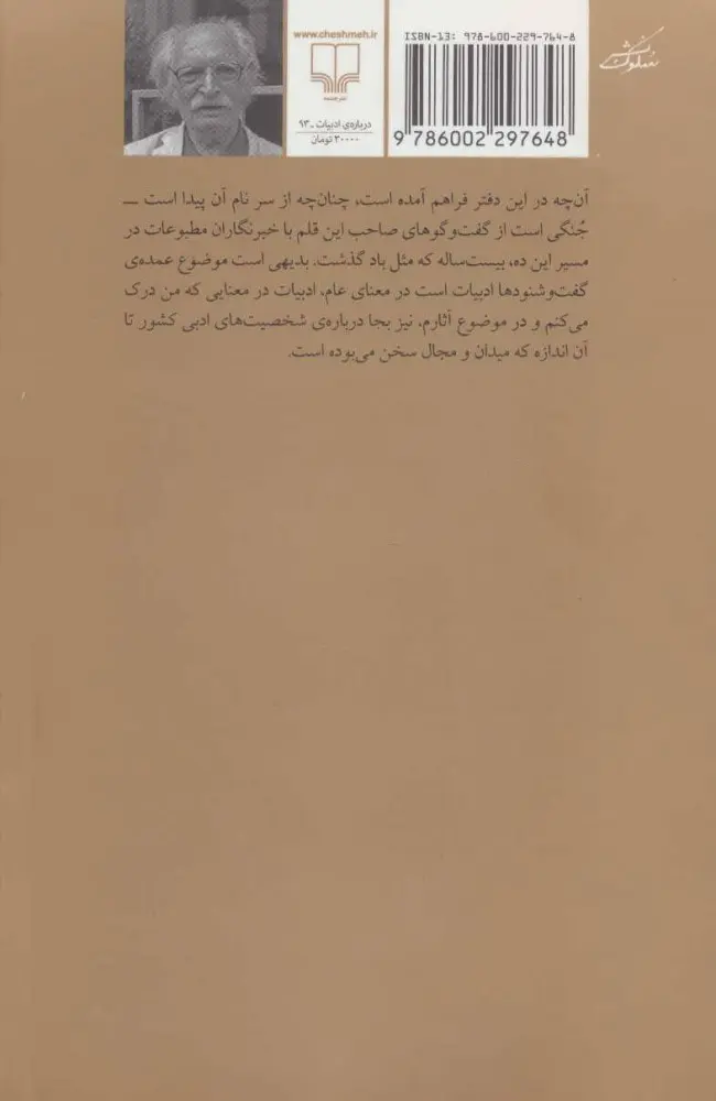 ” آنچه در این دفتر فراهم آمده است، چنانچه از سر نام آن پیداست – جنگی است از گفت وگوهای صاحب این قلم با خبرنگاران مطبوعات در مسیر این ده، بیست ساله که مثل باد گذشت. بدیهی است موضوع عمدهی گفت و شنودها ادبیات است در معنای عام، ادبیات در معنایی که من درک می کنم و در موضوع آثارم، نیز بجا دربارهی شخصیت های ادبی کشور تا آن اندازه که میدان و مجال سخن می بوده است