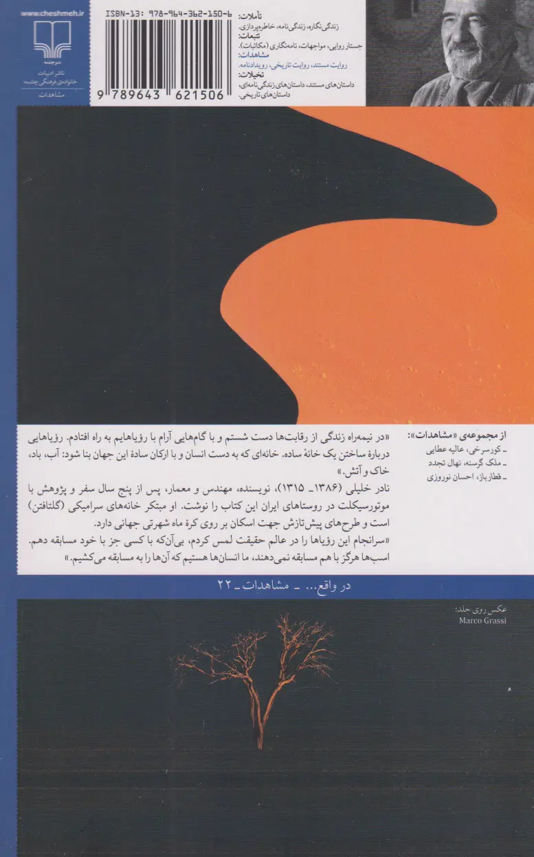 کتاب ارزشمند “تنها دویدن” ما حصل تجارب و پژوهش های پنج ساله نادر خلیلی معمار ایرانی است که مدت های زیادی را وقف تحقیق بر روی خانه های خشتی و ارزان قیمت در روستاهای ایران کرد. خلیلی تحصیلات فلسفی و معماری خود را در ایران، ترکیه و آمریکا گذراند. در سال 1970 مجوز ایالت کالیفرنیا را دریافت کرد و در ایالات متحده و سراسر جهان به کار معماری مشغول شد. خلیلی به دلیل نوآوری خود در سیستم زمین و آتش گلتفتان معروف به خانه های سرامیکی و تکنیک ساخت کیسه خاکی به نام سوپرادوب معروف بود. طرح های او به شدت از طرح های سنتی خانه های خشک در سرزمین مادری اش ایران الهام گرفته شده است. او از سال 1975 با معماری زمین و توسعه جهان سوم درگیر بود و مشاور سازمان ملل متحد برای معماری زمین بود. او سیستم Super Adobe خود را در سال 1984 در پاسخ به درخواست ناسا برای طراحی سکونتگاه های انسانی در ماه و مریخ توسعه داد. این پروژه تا زمان جنگ خلیج فارس که پناهجویان به ایران فرستاده شدند کاملا تئوری بود. وقتی این اتفاق افتاد خلیلی با برنامه توسعه سازمان ملل متحد (UNDP) و کمیساریای عالی پناهندگان سازمان ملل متحد (UNHCR) همکاری کرد و تحقیقات خود را در پناهگاه های اضطراری به کار برد.